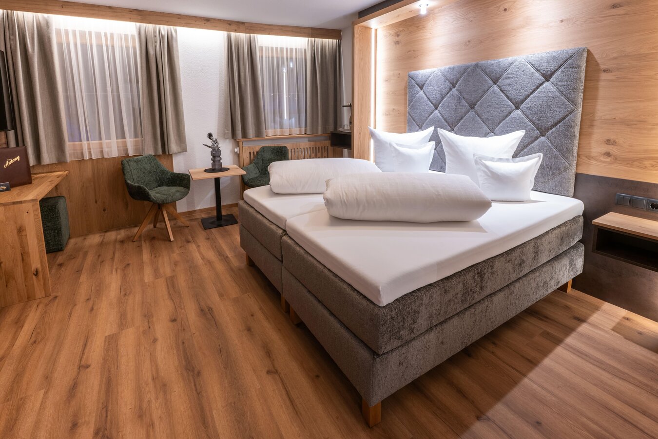 Unser 4****Hotel mit 80 Betten bietet Ihnen schöne geräumige Zimmer, größtenteils mit Balkon, SAT-TV, Telefon und W-LAN. Weiters steht Ihnen unser Wellnessbereich mit verschiedenen Einrichtungen (Kneippbecken, Biosauna, Finnische Sauna, Solekräuterdampfbad, Fußsprudelbecken, Infrarotkabine, Erlebnisduschen, Ruhe- und Relaxingraum) sowie Fitnessraum und Solarium zur Verfügung.