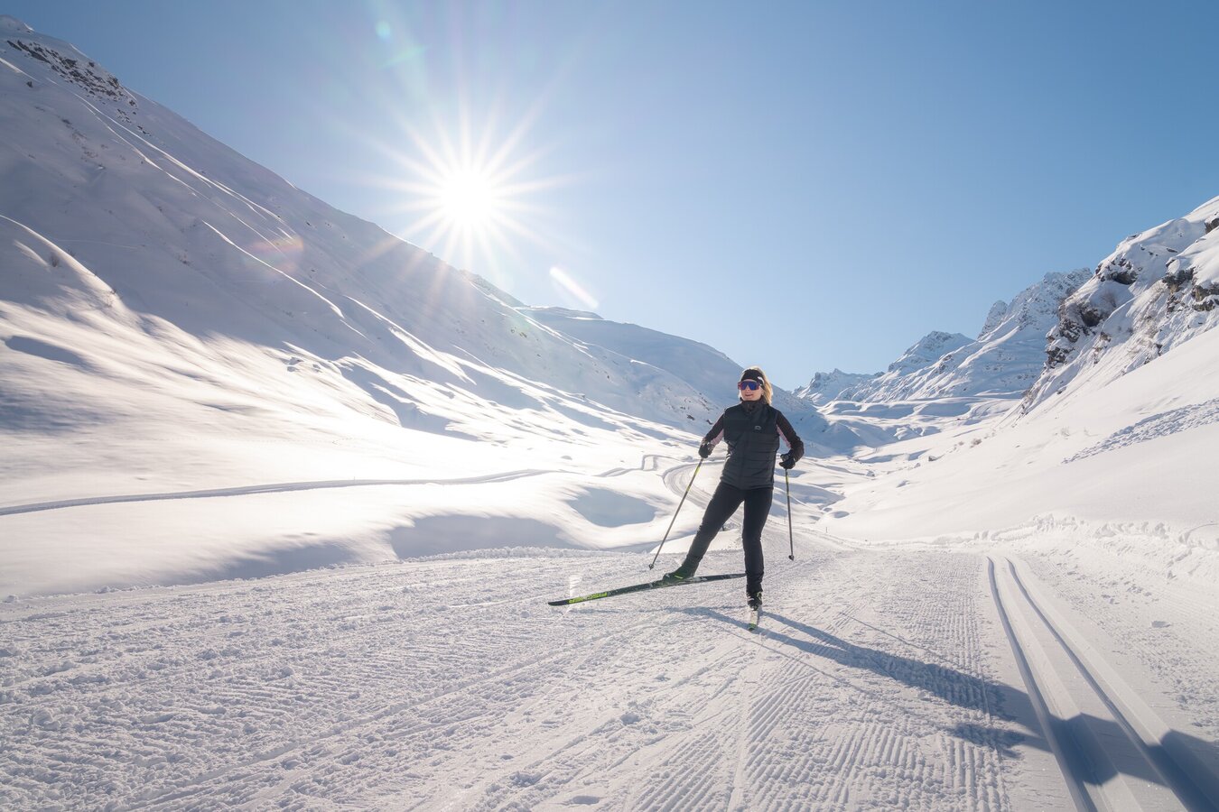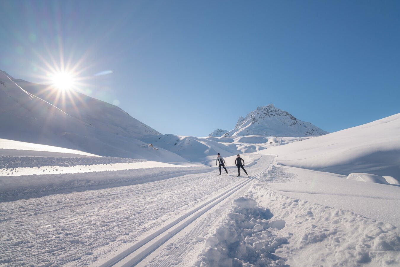 Die Rundloipe im Anschluss an die Loipe Vorderes Vermunt führt durch die verschneite Seenlandschaften. Sie ist perfekt für Naturliebhaber.
