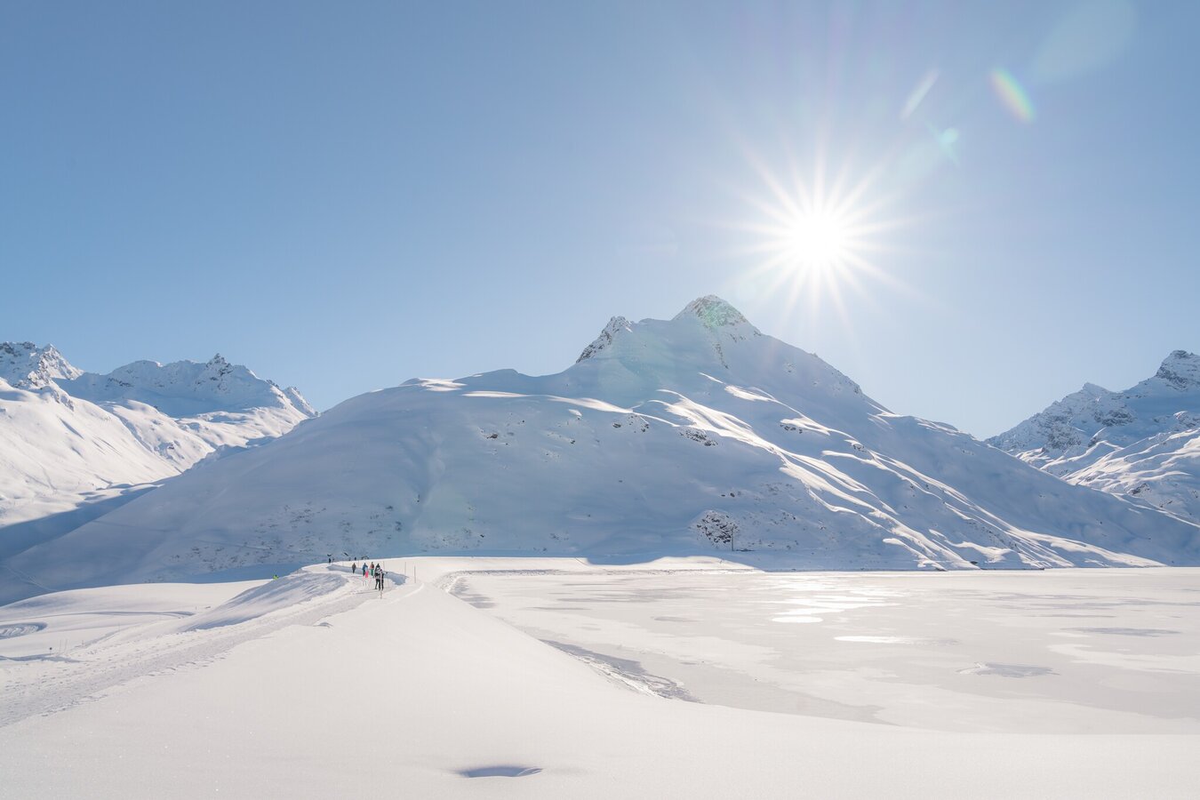 Die 2 Kilometer lange Dammloipe auf der Bielerhöhe führt entlang der imposanten Silvretta-Staumauer. Atemberaubende Panoramen machen sie besonders.
