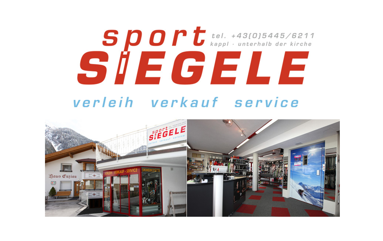 Sports shop and affordable ski rental in the centre of Kappl, below the church.