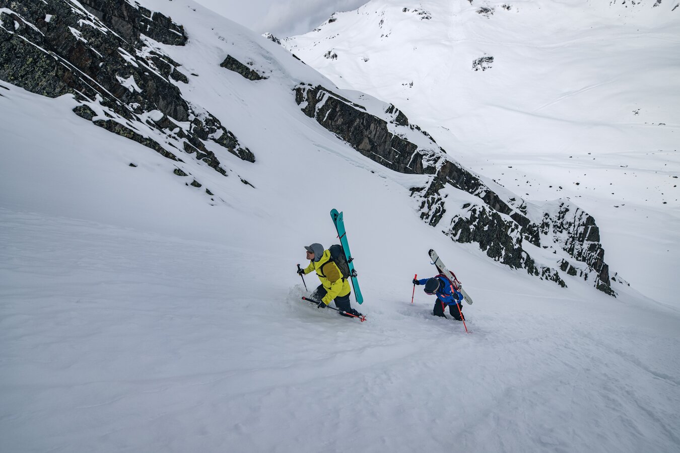 During the descent, you must keep an eye out for changes in terrain, including steeper passages and narrow gullies, which are ideal for experienced freeriders. The route ends at the bottom of the Samnaun valley, from where you can easily return to the ski area.