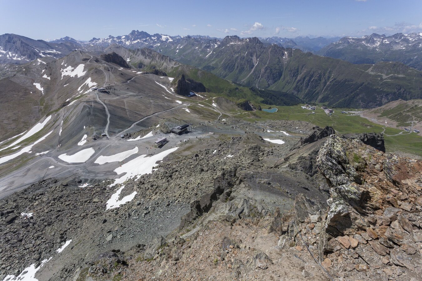 Alternative route without cable cars and lifts: Follow the signposts around Mullersattel towards Flimjoch at 2,757 metres above sea level. From Flimjoch, the trail runs downhill, taking you past Obere Velillalpe at 2,061 metres above sea level down to Ischgl on marked trails, forest roads and slope sections.