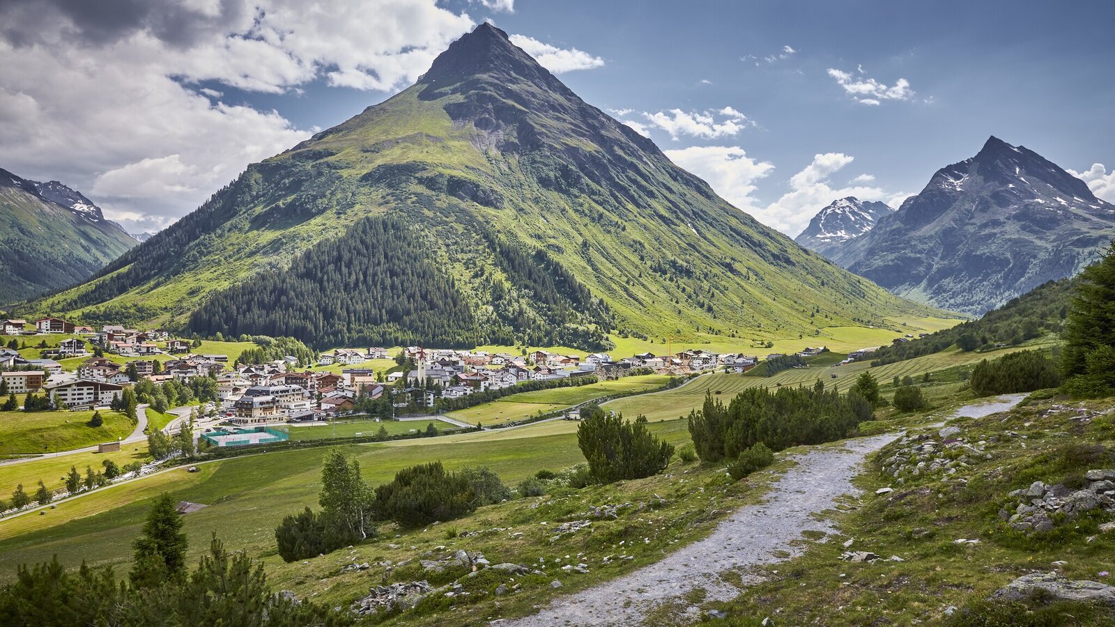 The stage starts at the centre of Galtür and runs via Außertschafein up to 1,560 metres above